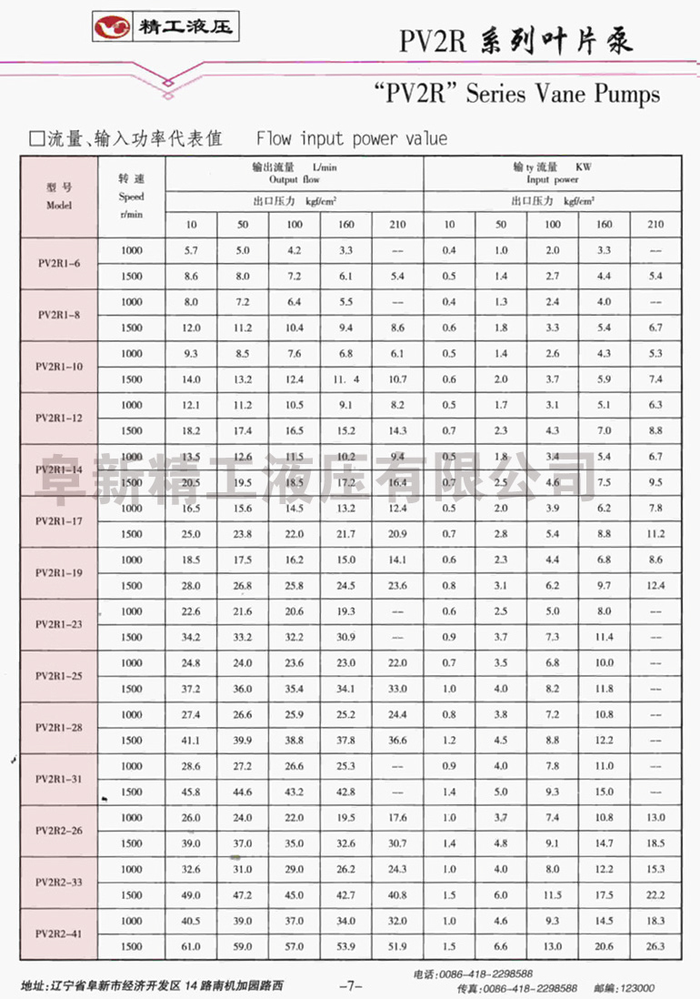 葉片泵參數(shù)